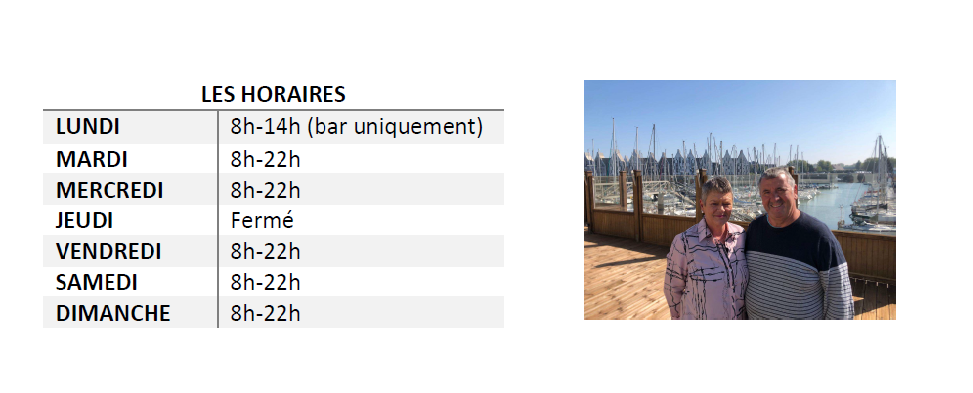 Venez retrouver Sylvie et Bernard à “La table du Yacht” ! profitez d’une belle vue sur le port tout en dégustant les spécialités du chef ou autour d’un verre sur la terrasse